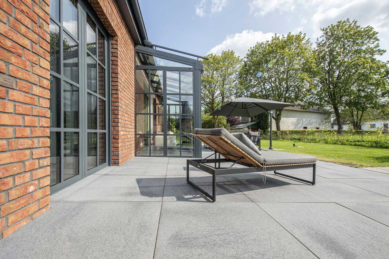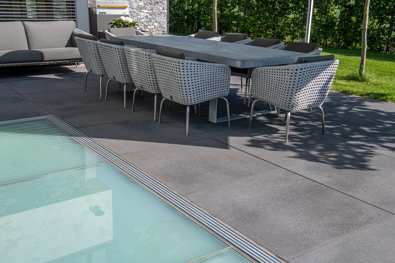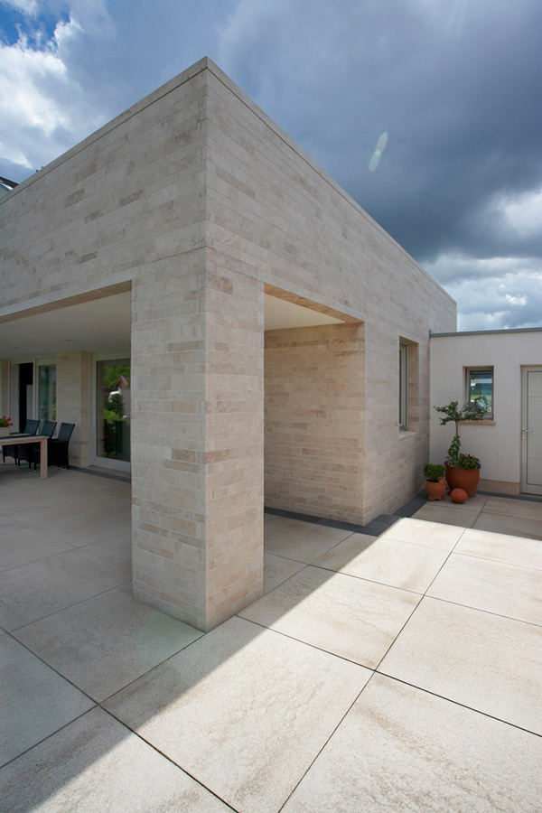 Umbriano è stata nominata per il famoso “Designpreis Deutschland 2012”. Umbriano è l'unione armoniosa tra natura e design. I bordi non fresati ricordano una pietra naturale non tagliata. La marezzatura naturale rende la superficie di ogni pietra e di ogni lastra un pezzo unico. La protezione Clean-Top® con CF 90 è ancora meglio della natura stessa.