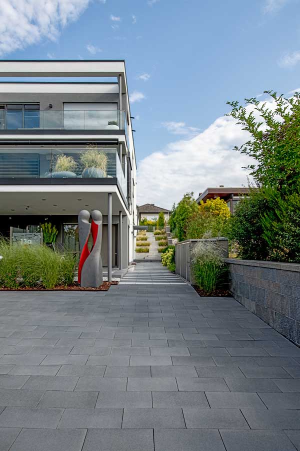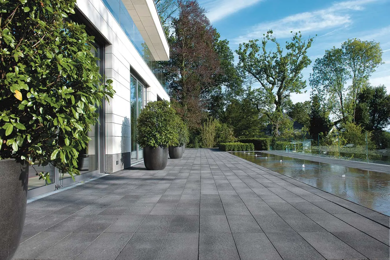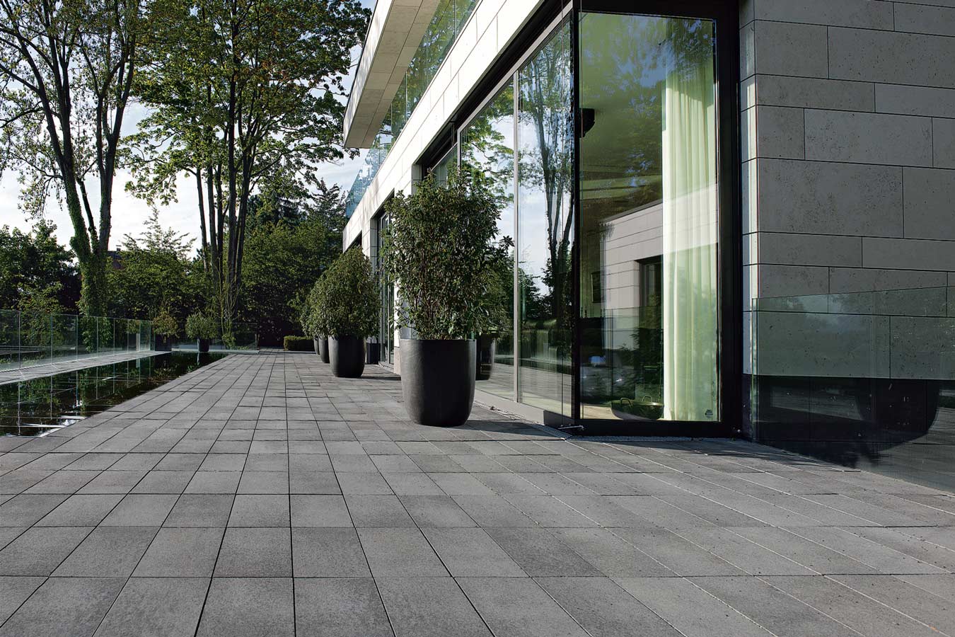 UMBRIANO® si distingue per la sua straordinaria poliedricità e qualità per quanto riguarda la funzionalità e il design, è disponibile in numerosi colori e forme come pietra da pavimentazione e soletta, e da molti anni è apprezzato in tutto il mondo. Che si tratti di una soletta spessa cinque centimetri per aree calpestabili o come sistema di pavimentazione spesso da otto a diciotto centimetri, che resiste ai massimi carichi mobili, i blocchi di calcestruzzo Umbriano dalle fini venature con bordi senza smusso e l’aspetto della pietra naturale sono apprezzati sia per uso privato che pubblico. E migliorano le aree di ingresso, i marciapiedi, le vie e le piazze delle città come pezzi unici e insostituibili con venature individuali sulla pietra.
